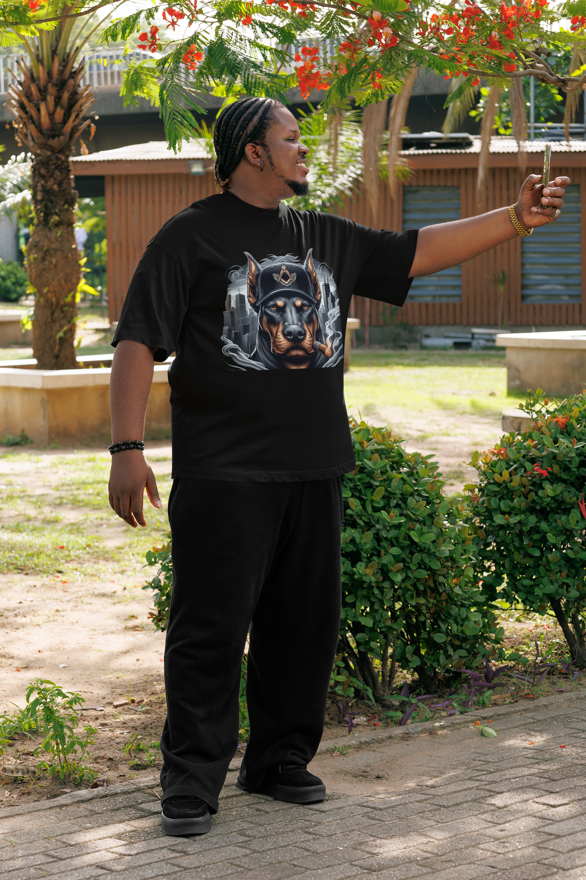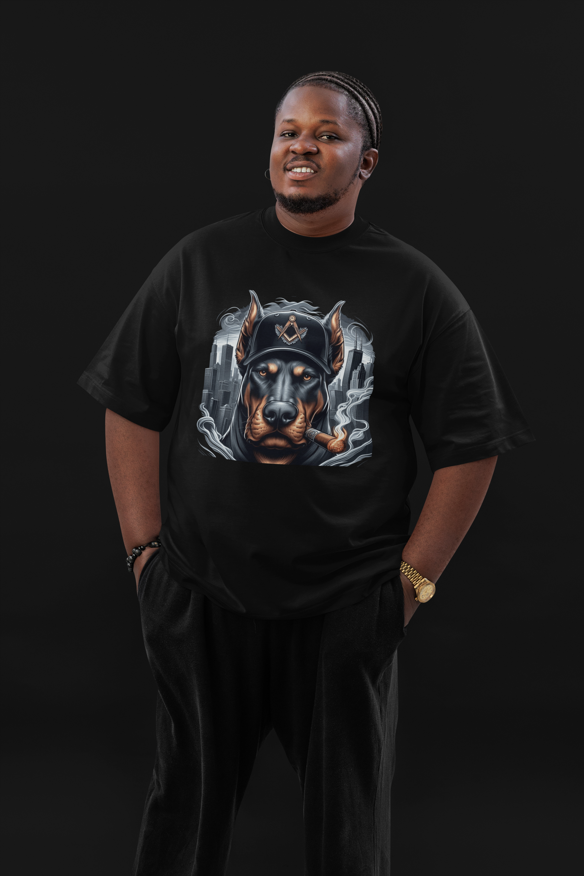 Stand out in style with this bold animal inspired graphic tee featuring a no nonsense Doberman Pinscher in black  streetwear. Perfect for fraternity fans, sneakerheads, and anyone who loves urban culture, this t-shirt brings personality and comfort together. Available in black, it’s made with soft, breathable cotton—ideal for everyday wear, casual outings, or as a unique gift. Pair it with jeans, sneakers, or a jacket to complete the look.