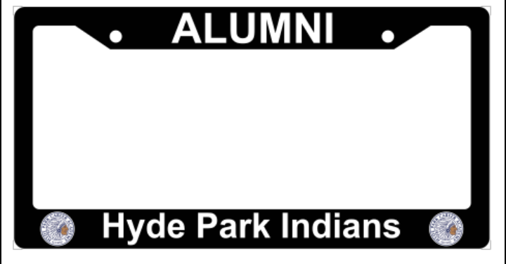 Hard Plastic license frame representing The Indian alumni of Hyde Park Career Academy.