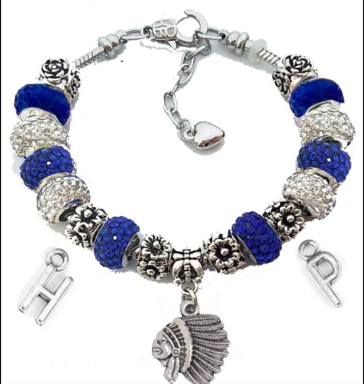 Beautiful stainless steel Charm bracelet representing the mighty Indians of Hyde Park!