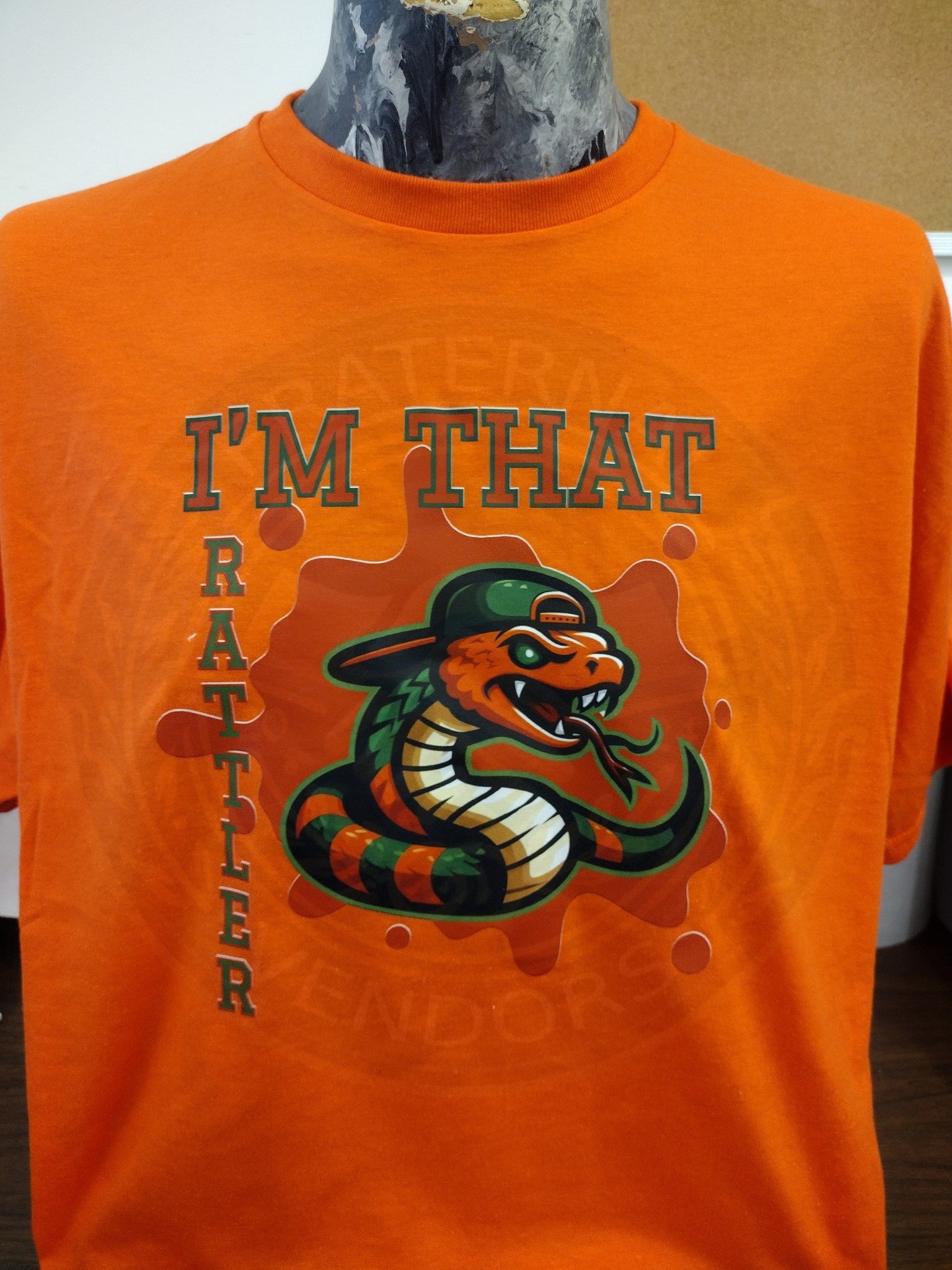 Show off your Rattler spirit with our bold "I’m That Rattler" short sleeve T-shirt, designed exclusively for students, alumni, and fans of FAMU. This standout design features a striking snake graphic alongside the powerful phrase "I’m That Rattler," symbolizing the strength, unity, and pride of the FAMU family.