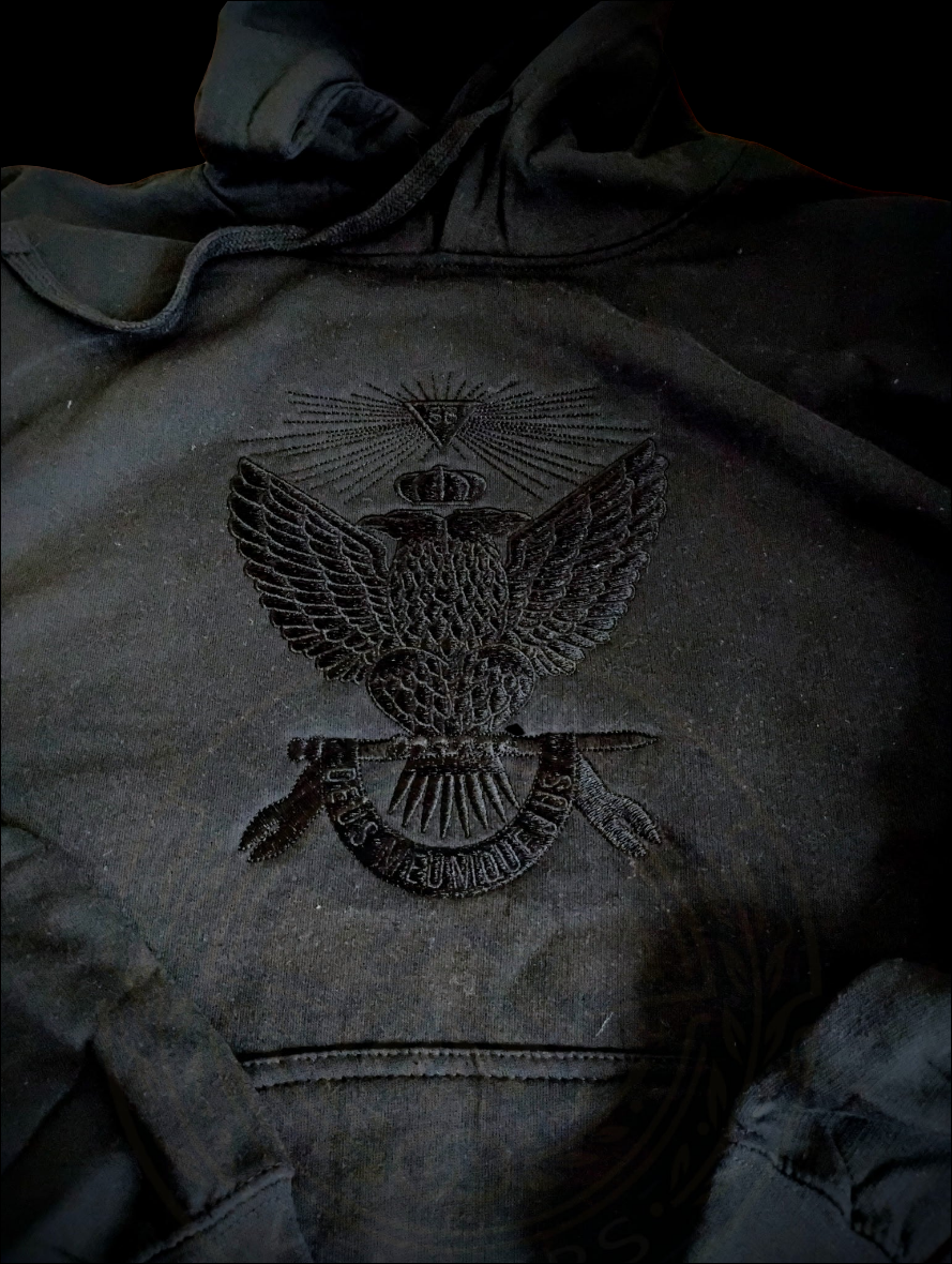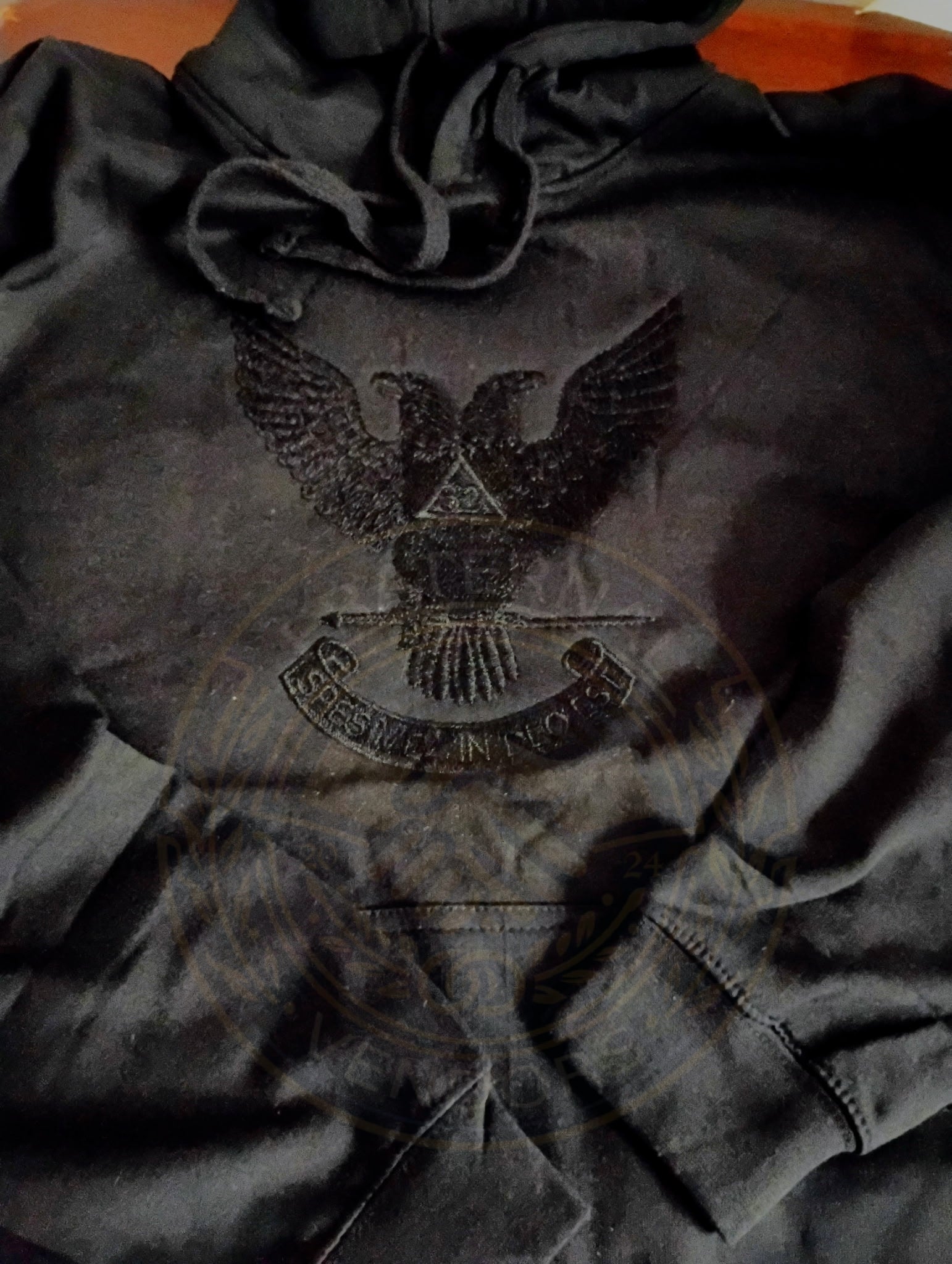 Elevate your style with this premium hooded sweatshirt featuring a sleek embroidered 32nd or 33rd NJ emblem. Designed for comfort, warmth, and subtle fraternity pride, this hoodie is perfect for casual wear, Masonic gatherings, or everyday representation. Durable stitching and a timeless one tone design make it a versatile wardrobe essential for Fraters. Available in Black.