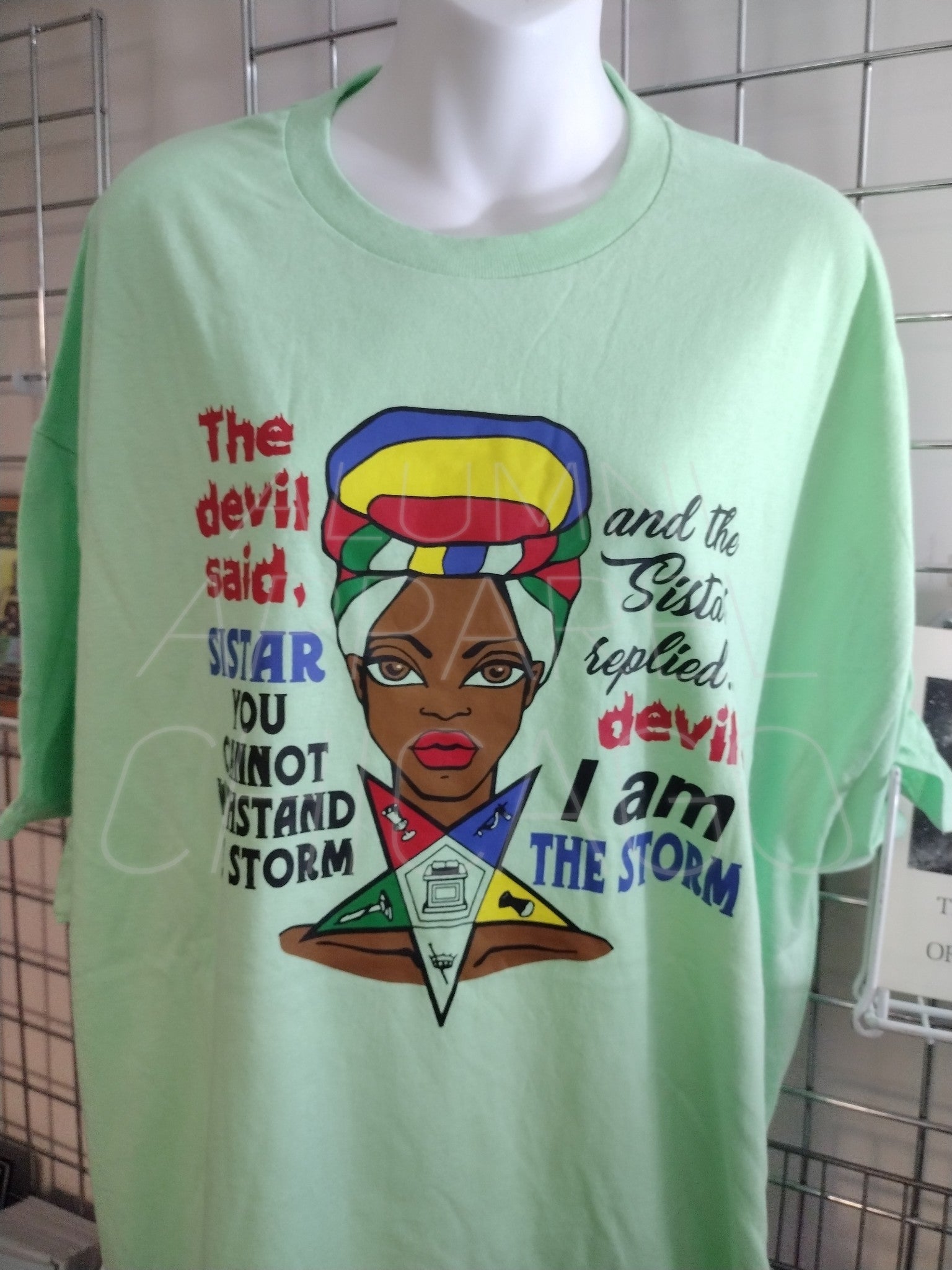 Introducing the Short Sleeve Mint "I Am The Storm" OES T-Shirt – a bold statement piece that blends style and symbolism. Crafted from soft, high-quality fabric in a refreshing mint color, this t-shirt features the empowering "I Am The Storm" design, perfect for showcasing your OES pride. Available in various sizes, it's a must-have for any Order of the Eastern Star member looking to make an impact.