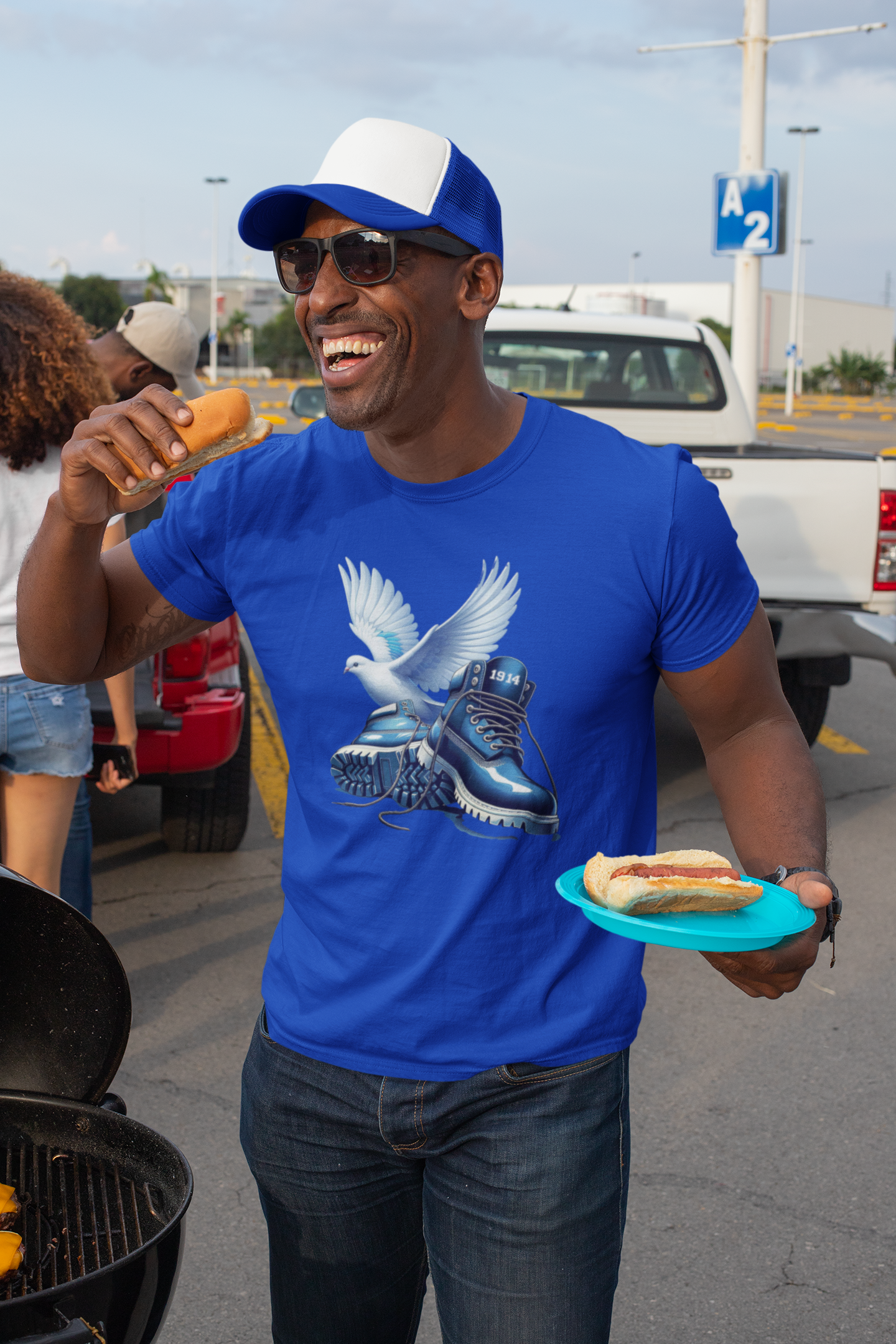 Stand tall in tradition with this bold blue T-shirt, designed with the powerful “Boots on the Ground” theme for the Brothers of that Blue and White. Crafted from soft, durable fabric, this shirt features a standout design that symbolizes strength, unity, and brotherhood. Perfect for chapter events, casual wear, or representing your fraternity with pride, it blends comfort with legacy. A must-have for members and supporters who want to showcase loyalty and style in one statement piece.