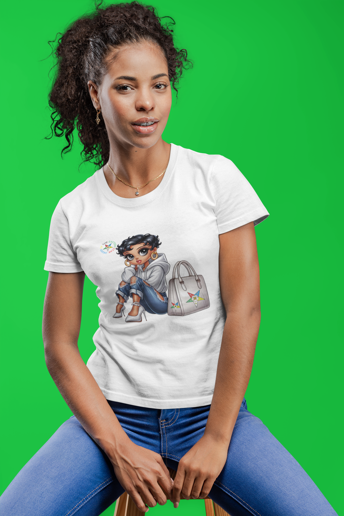 Show off your style and confidence with this chic women’s graphic t-shirt featuring a fashionable cartoon character sitting with heels, hoop earrings, and a designer-inspired bag. Perfect for fashion lovers, sorority sisters, and anyone who enjoys bold and trendy art, this tee adds personality to your everyday wardrobe. Available in white, it’s soft, breathable, and easy to pair with jeans, skirts, or layered looks. Makes a great gift for stylish women who love unique fashion statements.