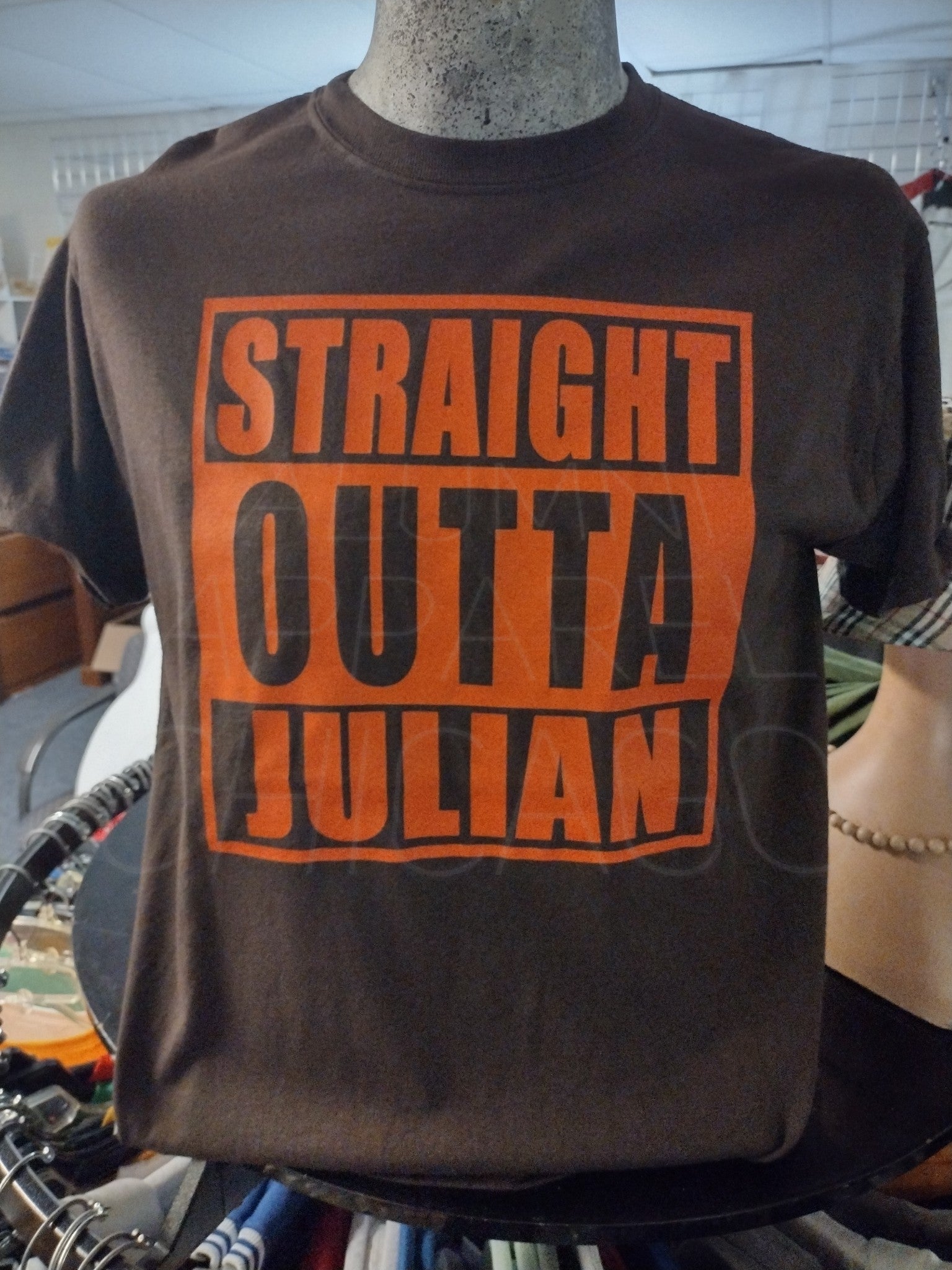 The Short Sleeve Brown "Straight Outta Julian" T-shirt – a must-have for any wardrobe! Crafted from soft, comfortable fabric, this trendy tee features the bold "Straight Outta Julian" graphic, perfect for showing off your style. Available in various sizes, this shirt is part of our Closeout Collection, which means it's your last chance to snag it at an unbeatable price. Whether you're repping your roots or looking for a unique design, this T-shirt is the perfect choice. Act fast—once it’s gone, it won’t be restocked. Don’t miss out on owning this stylish piece!