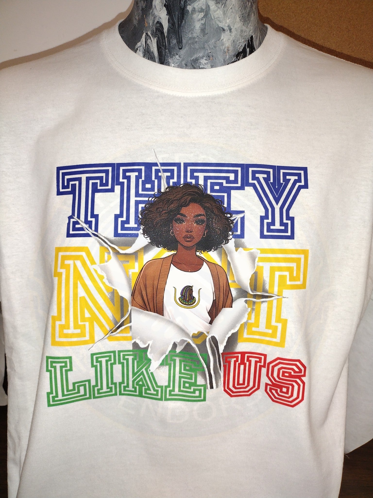 Celebrate your sisterhood in style with our "They Not Like Us" Daughters of Isis T-shirt, featuring the iconic Daughters of Isis symbol alongside a bold, empowering slogan in Blue, Yellow, Green, and Red. Available in White, this tee is made from soft, durable fabric, making it perfect for everyday wear or special chapter events. Whether you're attending meetings or out casually, this trendy design lets you express your DOI pride with flair. Don't settle for ordinary—grab yours today and stand out in any color that speaks to your unique spirit!