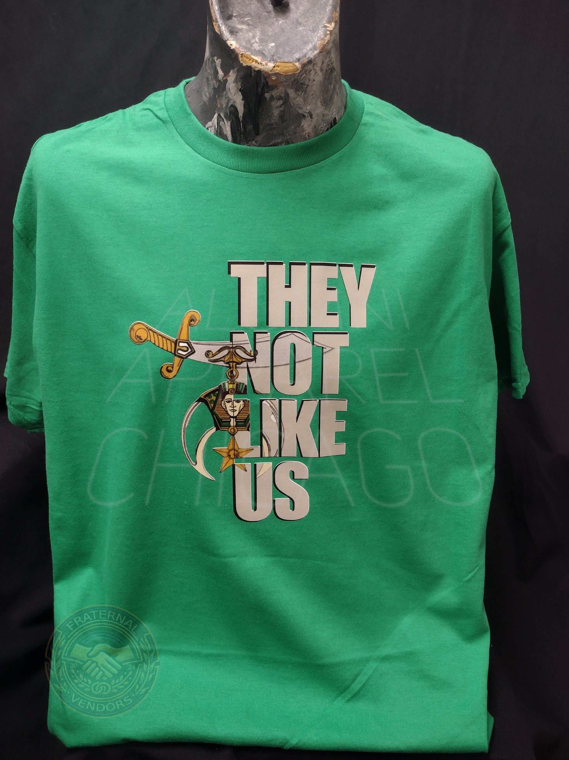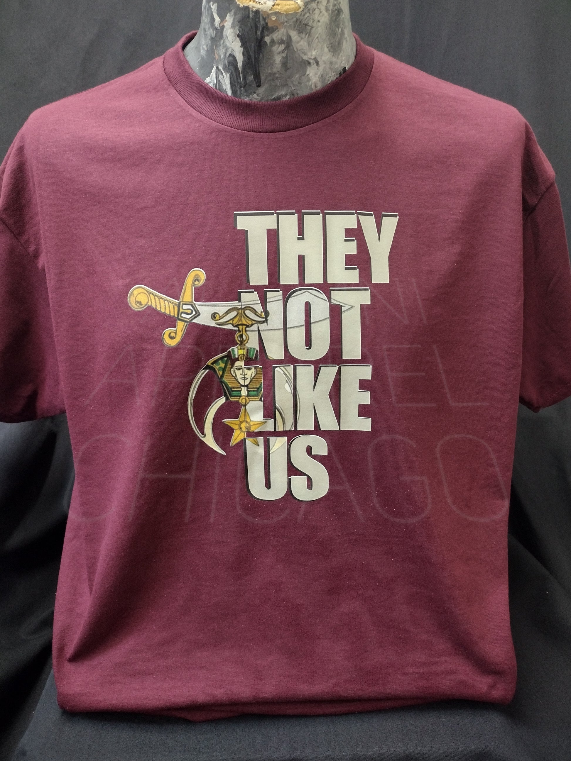 Showcase your Shriner pride with our "They Not Like Us" T-shirt, featuring the iconic Shriner emblem and a bold, trendy slogan. Available in Maroon, Black, Red, and Green, this shirt is perfect for Shriners looking to express their brotherhood in style. Crafted from soft, high-quality fabric, it's perfect for events, gatherings, or casual outings. The vibrant colors and striking design make this a standout addition to any Shriner's wardrobe. Don’t miss out on this unique piece—grab your favorite color or get more than one and wear your Shriner spirit proudly!